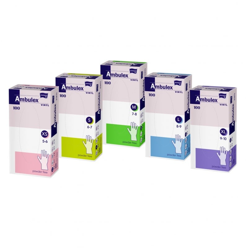 Niejałowe rękawice Ambulex Vinyl wykonane z polichlorku winylu, w swoim składzie nie zawierają lateksu. Przeznaczone są do wykonywania zabiegów diagnostycznych lub terapeutycznych, procedur niskiego ryzyka zakażenia, w których nie ma obecności płynów ustrojowych, krwi oraz środków chemicznych. Polecane dla osób uczulonych na lateks.