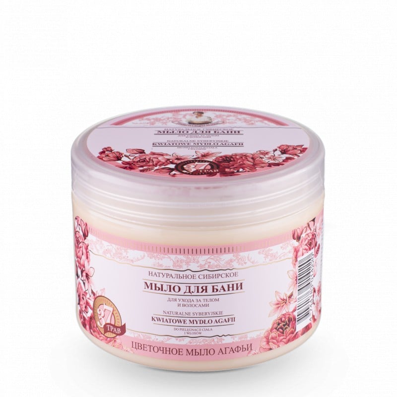 Syberyjskie Kwiatowe Mydło Babuszka Agafia to uniwersalny kosmetyk w postaci żelu (pasty) zamkniętej w słoiczku przeznaczony do pielęgnacji całego ciała i włosów. Z powodzeniem zastępuje drogeryjny żel pod prysznic - jest wydajne i pięknie pachnie.