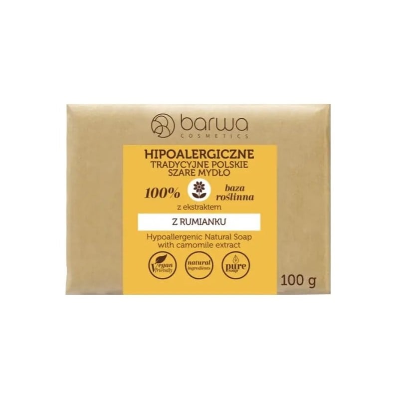 Hipoalergiczne Tradycyjne Polskie Szare Mydło z ekstraktem z rumianku, Barwa, 100 g